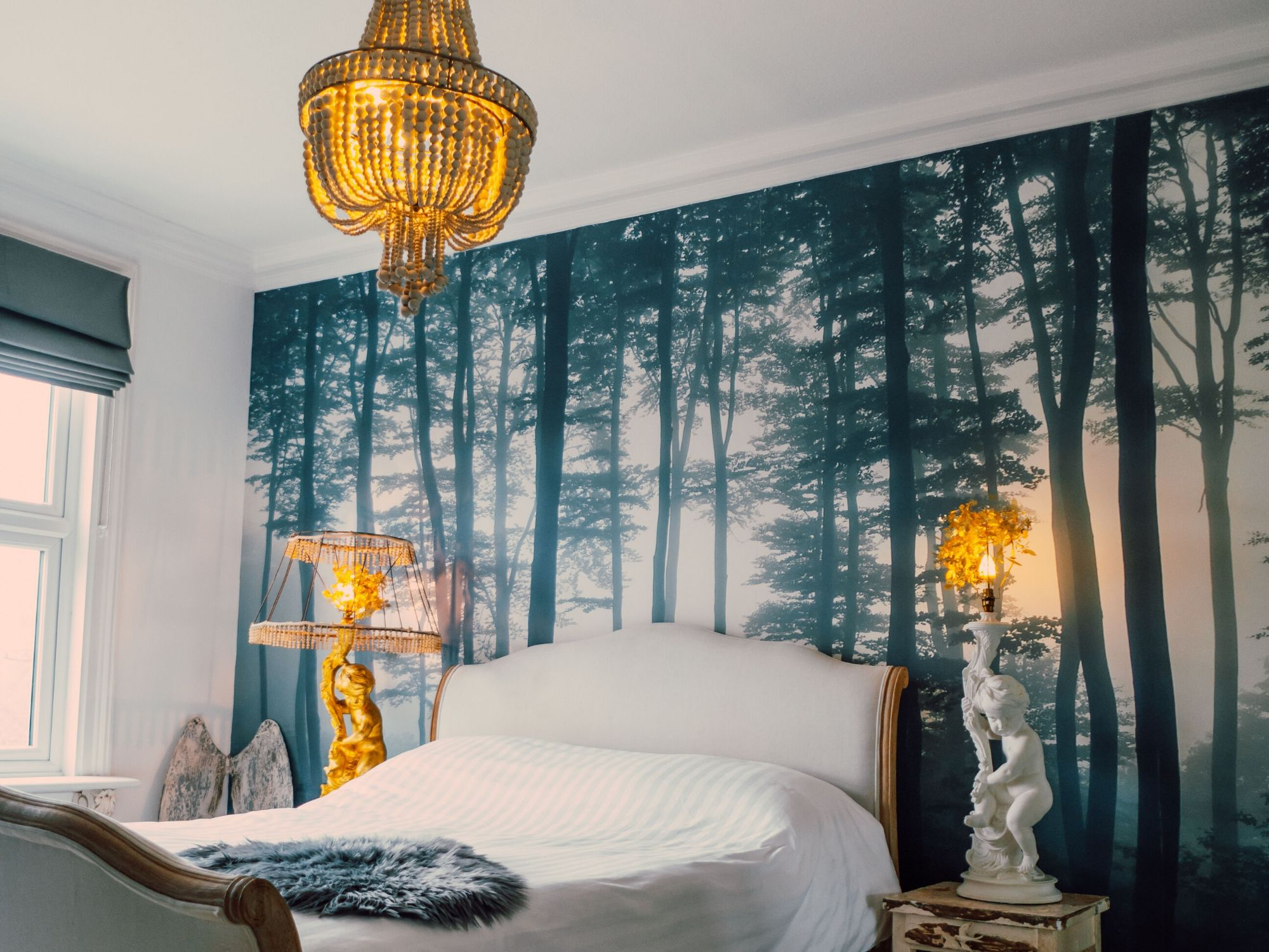 "Here we go," the man says, shoving open the door. It creaks and opens onto a bedroom which hadn't existed this morning. The single room isn't as large and sprawling as Doctor Strange's own set of multiple rooms (the benefit of seniority), but it's nice: there's a large window which looks out onto the Chelsea street and lets in light, the bed is large and lavish, and the lamps are cozy even if they're in the form of strange Victorian cherubs. There's a desk and a bookcase on the other side of the room, both empty; the wallpaper is forested trees.